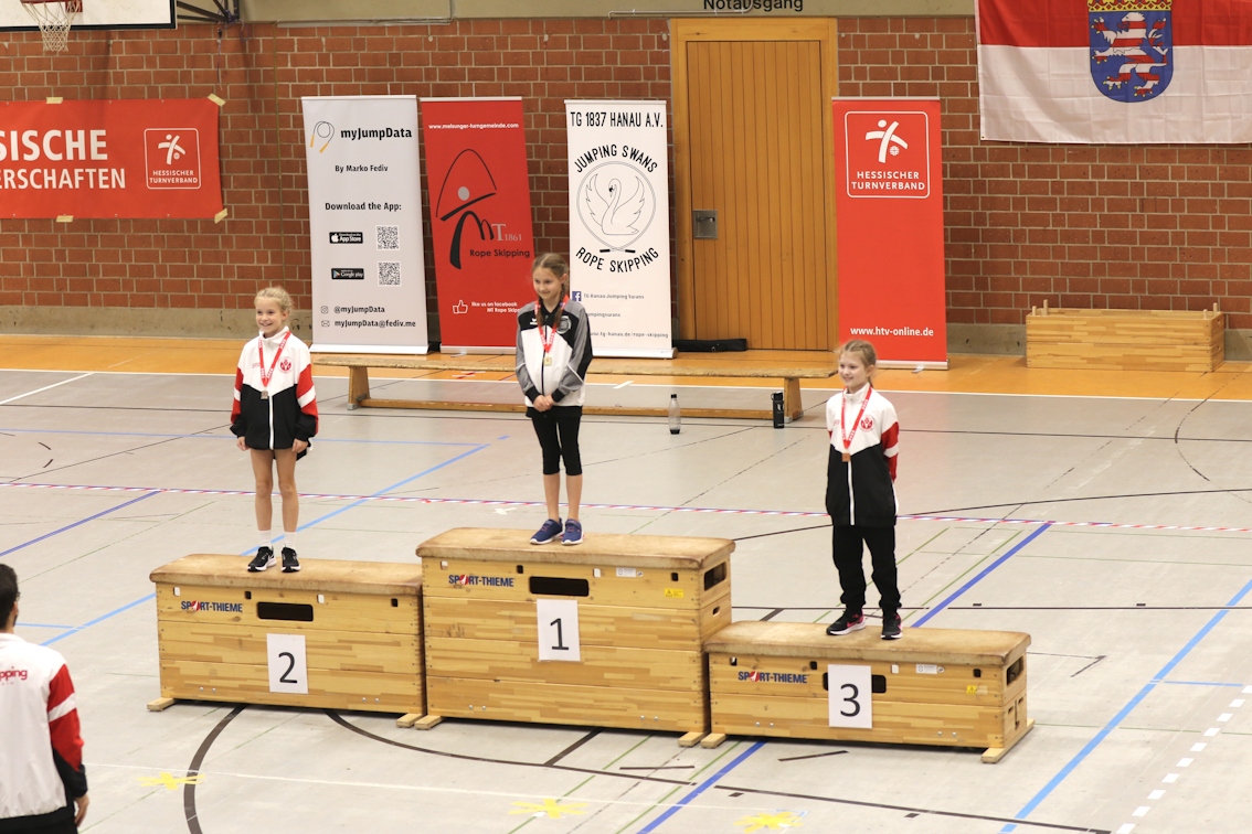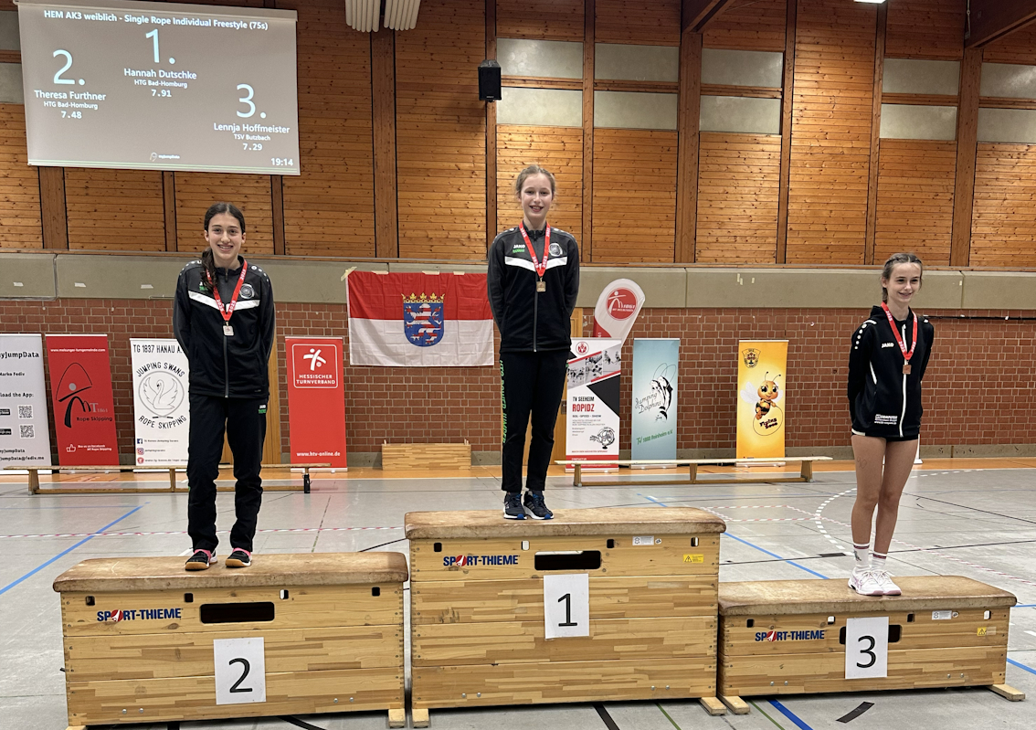 Die Freestyle-Bewertungen wurden dieses Jahr mit besonderer Aufmerksamkeit verfolgt, da bei diesen hessischen Einzelmeisterschaften in Deutschland zum ersten Mal nach den erneut aktualisierten Bewertungskriterien (Kreativität, Musikalität sowie Präsentation und Schwierigkeitsgrad) des Rope Skipping Weltverbands IJRU gewertet wurde. Trainerin Clara Kowalski hatte dabei der Springer und Springerinnen der HTG gut vorbereitet, konnte sie dank ihrer Fortbildung zur Bundeskampfrichterin gleich auf die aktuellen Vorgaben im Training eingehen und einige Freestyles entsprechend anpassen.