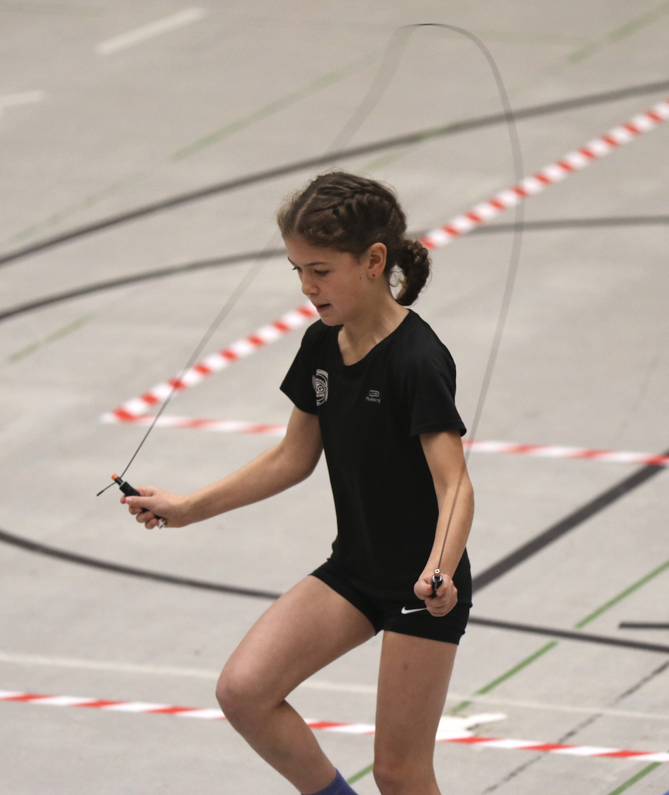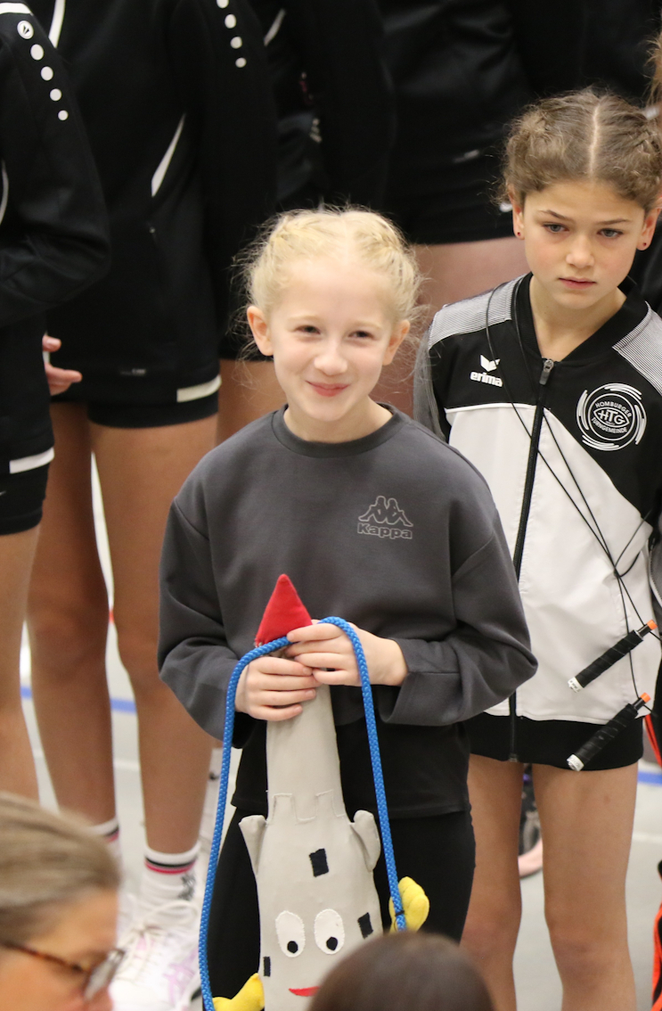 Last but not least haben Emma Lenz, Anastasia Ananina und Lilliana Perel in der AK 2 (Jahrgänge 2009/2010) die HTG vertreten. Anastasia konnte sich in der Disziplin 30 sec Speed mit 83 Zählern direkt für das Bundesfinale qualifizieren. Emma erreichte ihr bestes Ergebnis in 30 sec Double Under und kam mit 76 Doppeldurchschlägen in die Top Ten. Leider kamen beide mit ihren schwierigen Freestyles nicht ganz fehlerfrei durch die Übungen. Lilliana Perel entschied sich, nur in 2 Disziplinen zu starten: Freestyle und Triple-Under. Sie belegte mit 7,23 Punkten den 5. Platz und hat gute Chancen auf eine bundesweite Qualifikation, sobald die Punkte vom Technischen Komitee festgelegt worden sind. Im Triple-Under belegte Lilli mit 48 Sprüngen Rang 7.