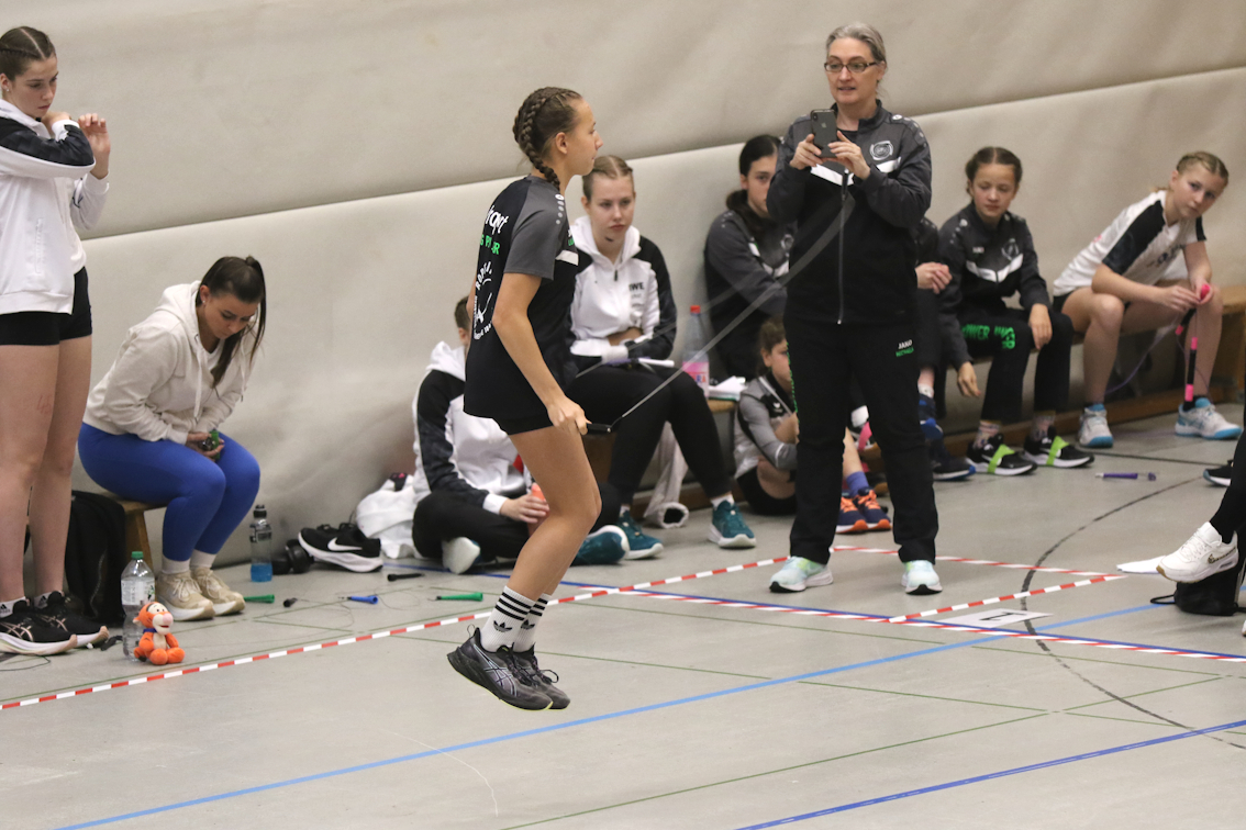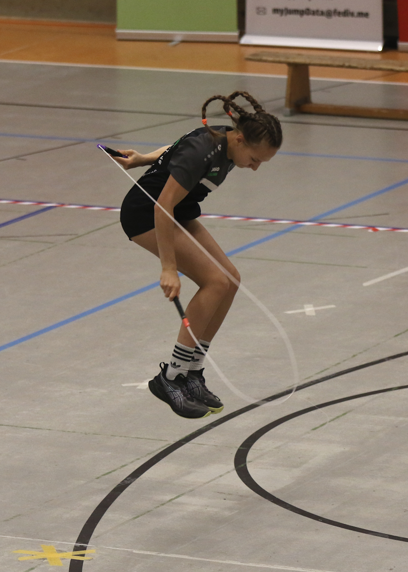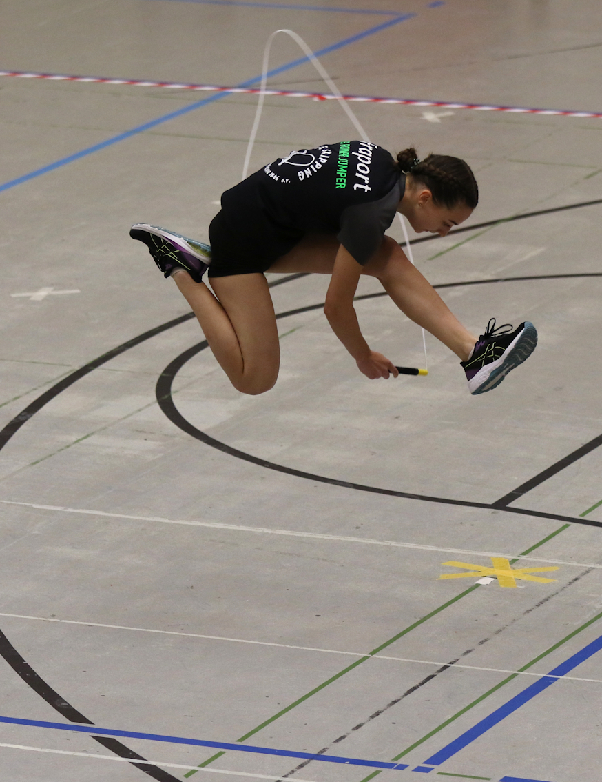 Hinsichtlich der Qualifikationsanforderungen für die Deutschen Meisterschaften bzw. zum Bundesfinale werden sich einige Teilnehmer der hessischen Einzelmeisterschaften aufgrund der erneut aktualisierten Bewertungskriterien noch ein wenig gedulden müssen. Während bei den Einzel-Speed-Disziplinen schon erste Qualifikationen feststehen, erfolgt bundesweit noch eine Abstimmung im Technischen Komitee über die Punktwerte im Freestyle und Overall. Mit Anastasia, Theresa, Hannah und Zoé haben die ersten vier HTG Power Jumper bereits ihr Ticket zu den Bundeswettkämpfen gelöst und freuen sich darauf, zum 21./22. März 2026 ins schwäbische Ellwangen in die Rundsporthalle fahren zu dürfen.