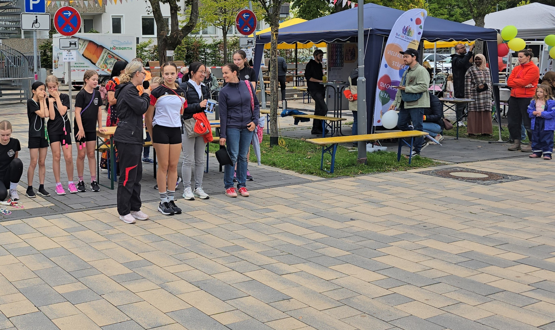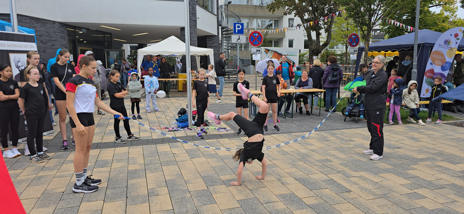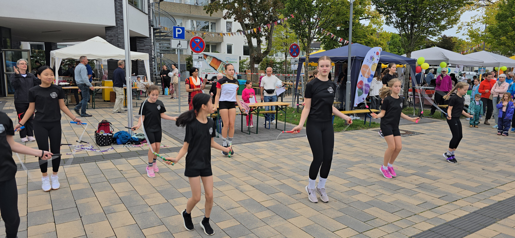 Angekündigt von Bärbel Andresen, die das soziale Stadteilbüro Steinbach leitet, zeigten unsere 10 Mädchen unter der Leitung von Trainerin Michaela Kowalski, was sie können und wie gut sie die Sportart Rope Skipping beherrschen.