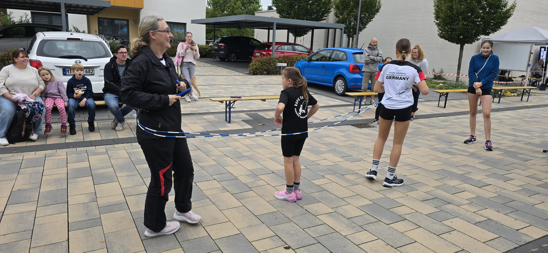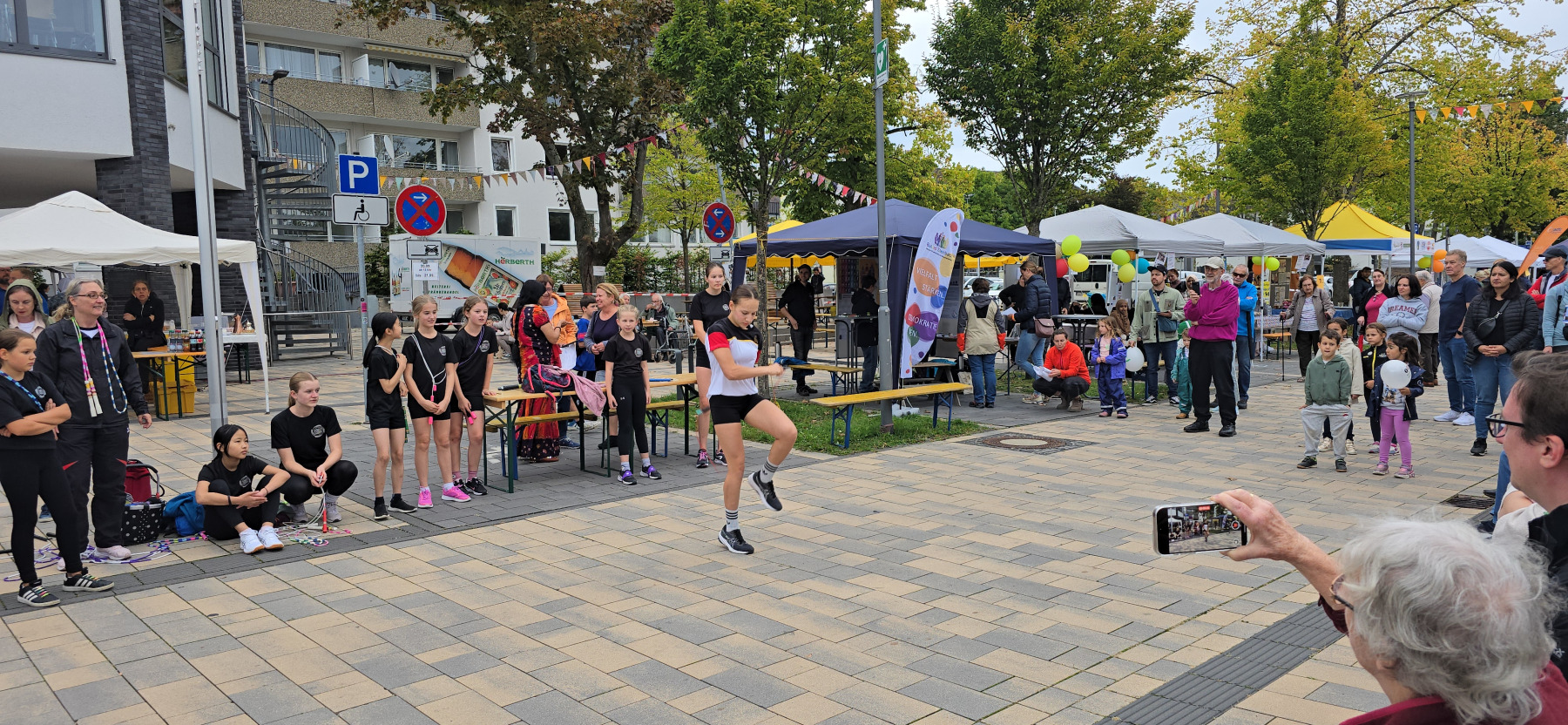 Sogar auf hartem Asphaltboden zeigte Lilliana Perel ihre spektakulären Überschläge mit dem Seil, die sie kurz zuvor noch in Japan bei der diesjährigen Rope Skipping Weltmeisterschaft zum Besten gab. Die Zuschauer spendeten viel Applaus, blieben stehen, staunten und stellten auch die eine oder andere Frage zu der noch so neuen Trendsportart.